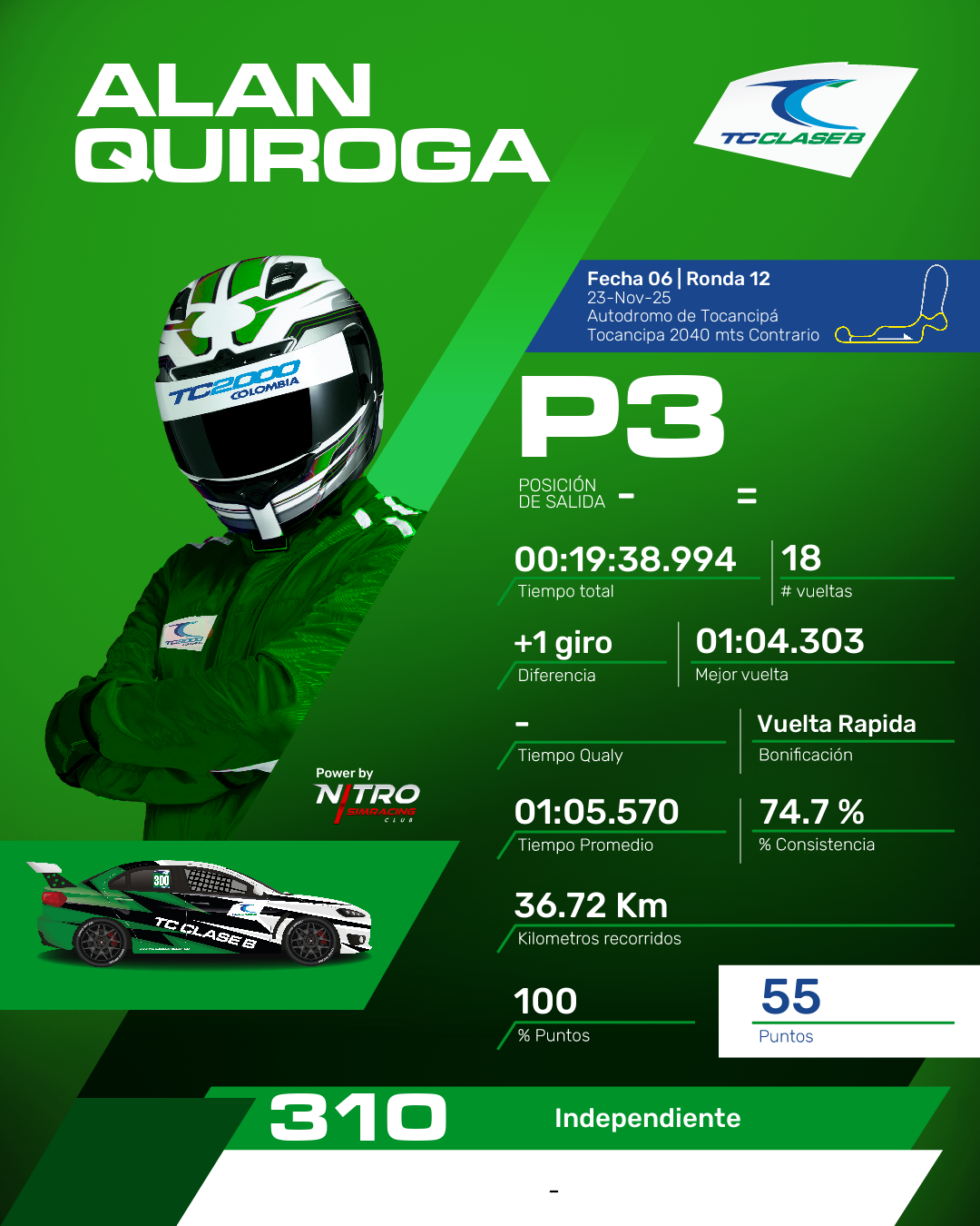 Independiente | 18 | 00:19:38.994 | +1 giro | 01:04.303 | 100% | 55 |