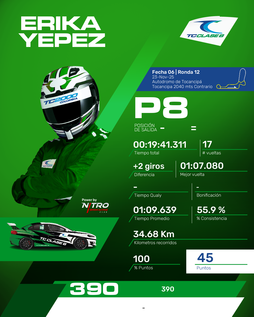 390 | 17 | 00:19:41.311 | +2 giros | 01:07.080 | 100% | 45 |